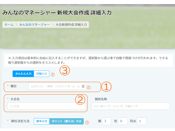 ステップ2 大会情報の入力